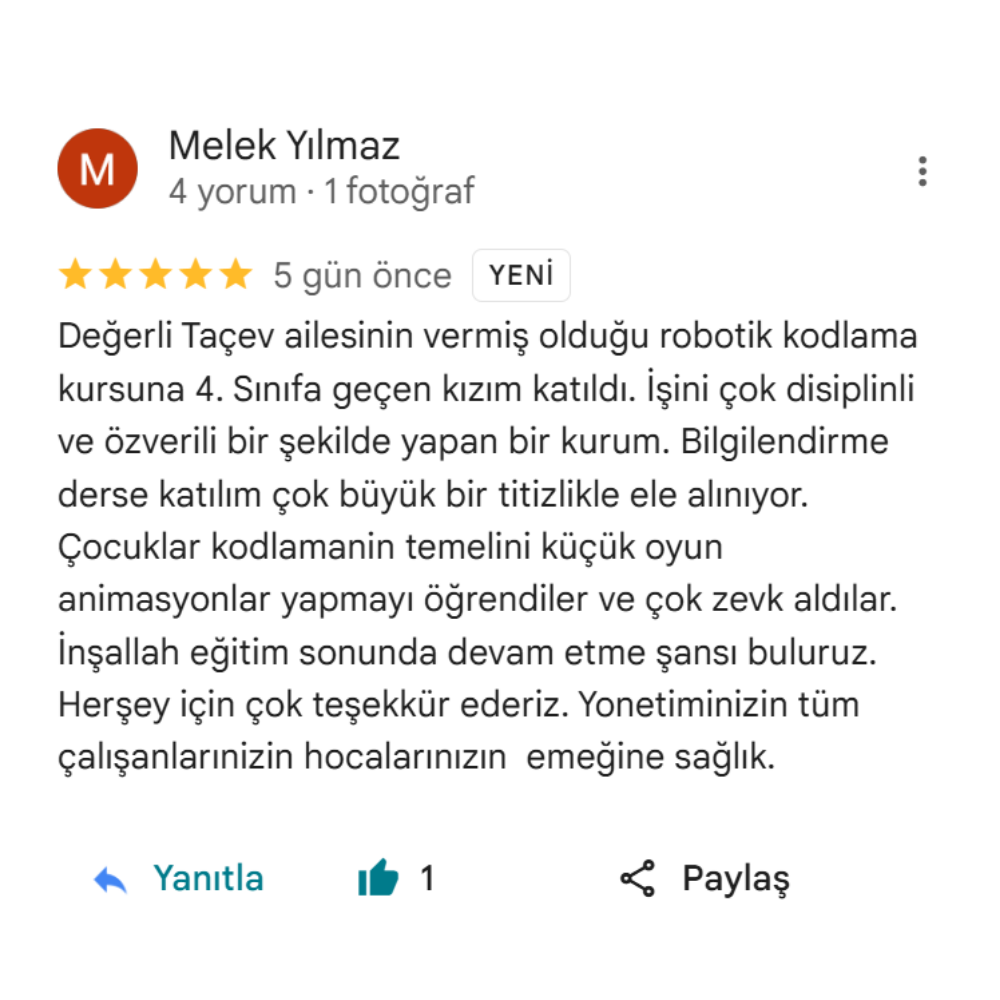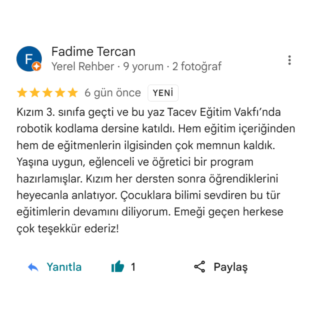 Bizim için en büyük mutluluk, öğrencilerimizin gözlerindeki heyecanı ve velilerimizin yüreklerindeki memnuniyeti görmek. Bu satırlar, o mutluluğun en samimi yansımalarıdır. #gelecekbizim #teknolojidebiz #tacevteknoloji #parlakbeyinler #gücümüzbeynimiz #tech #technology #robotics #educationement